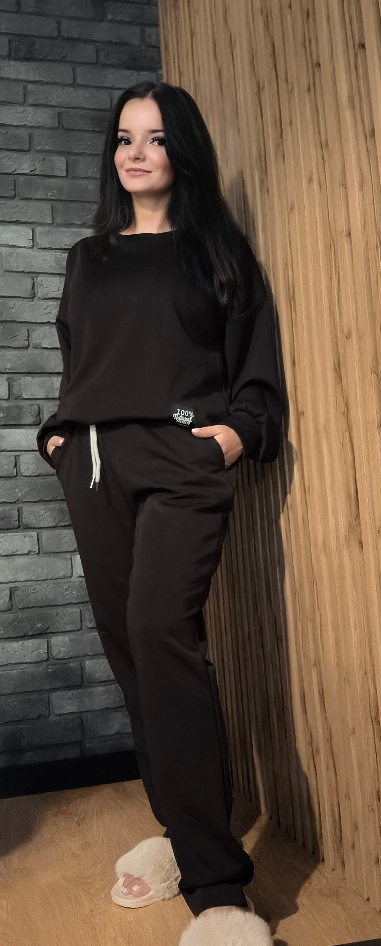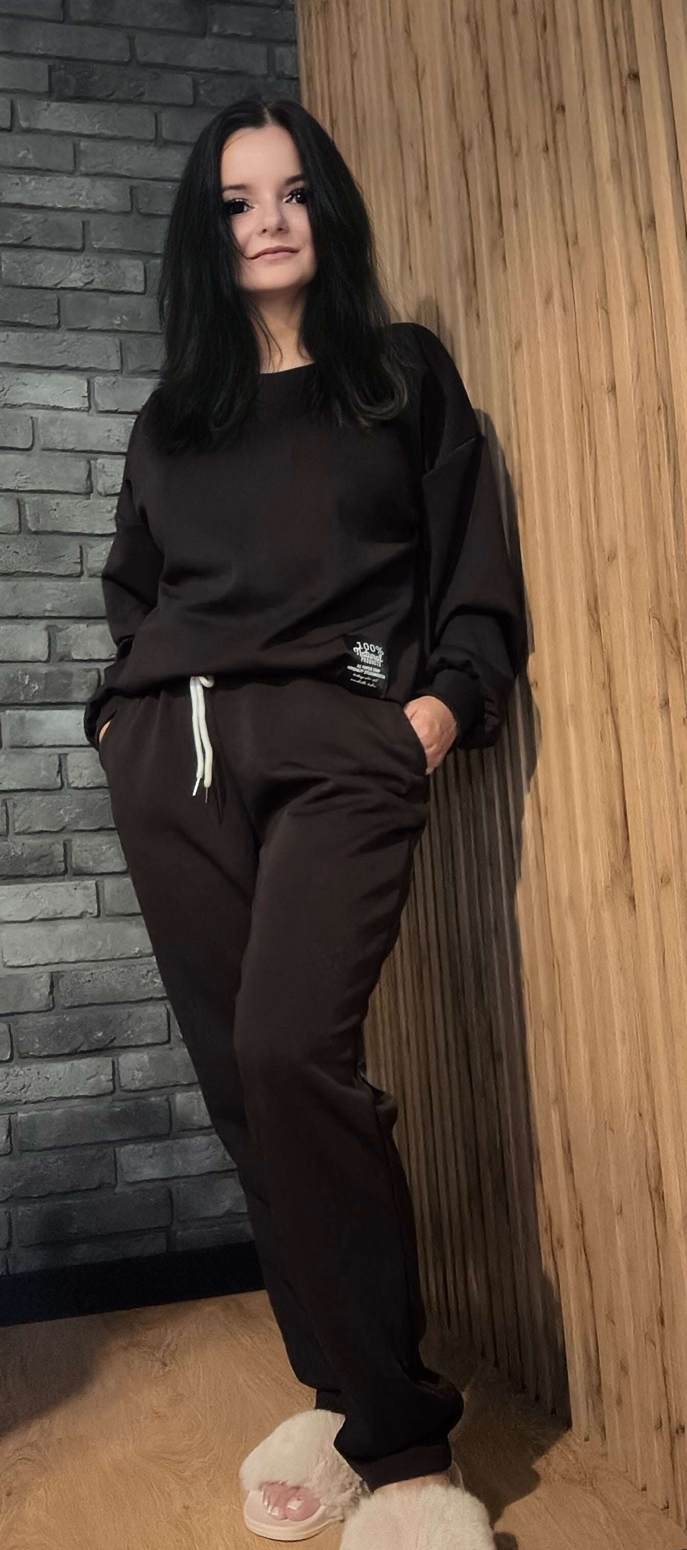 Wygodny komplet dresowy wykonany z miękkiej i przewiewnej wiskozy, który zapewnia komfort noszenia przez cały dzień. W skład zestawu wchodzi bluza wkładana przez głowę(nieodpinana) oraz spodnie z elastycznym wykończeniem. Dzięki uniwersalnemu krojowi komplet pasuje na sylwetki w zakresie od S do L.